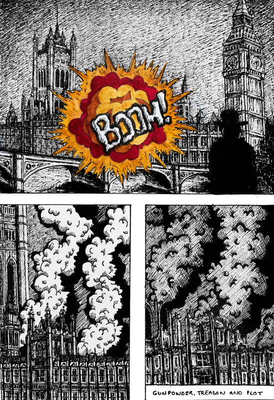 I was subsequently given this section of the comic along with the line "gunpowder, treason and plot" from the rhyme.