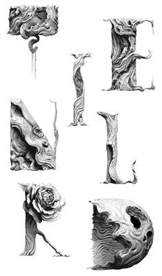 Though I'm already quite content on using the font mentioned in the previous post, I've gathered a selection of images below of other people's similar efforts in hopes that they can inspire my own designs as I move forward with my organic/natural form ideas.