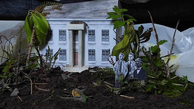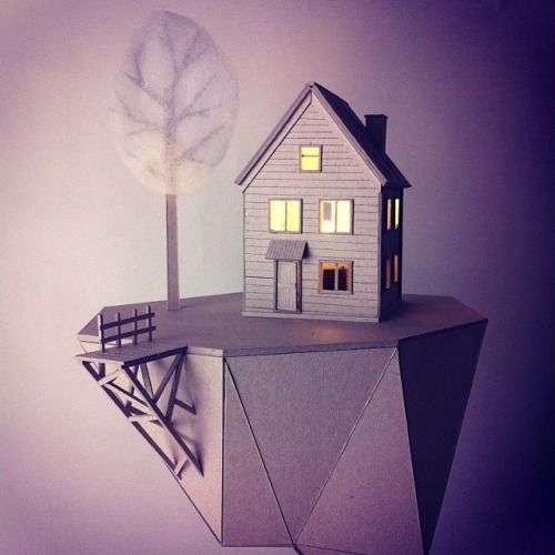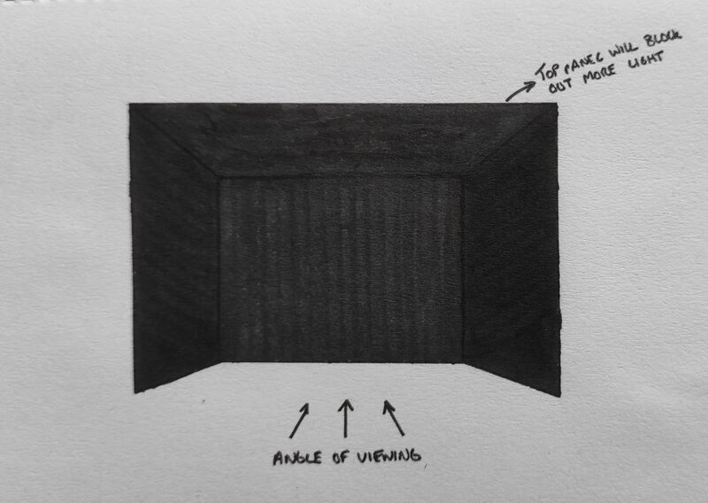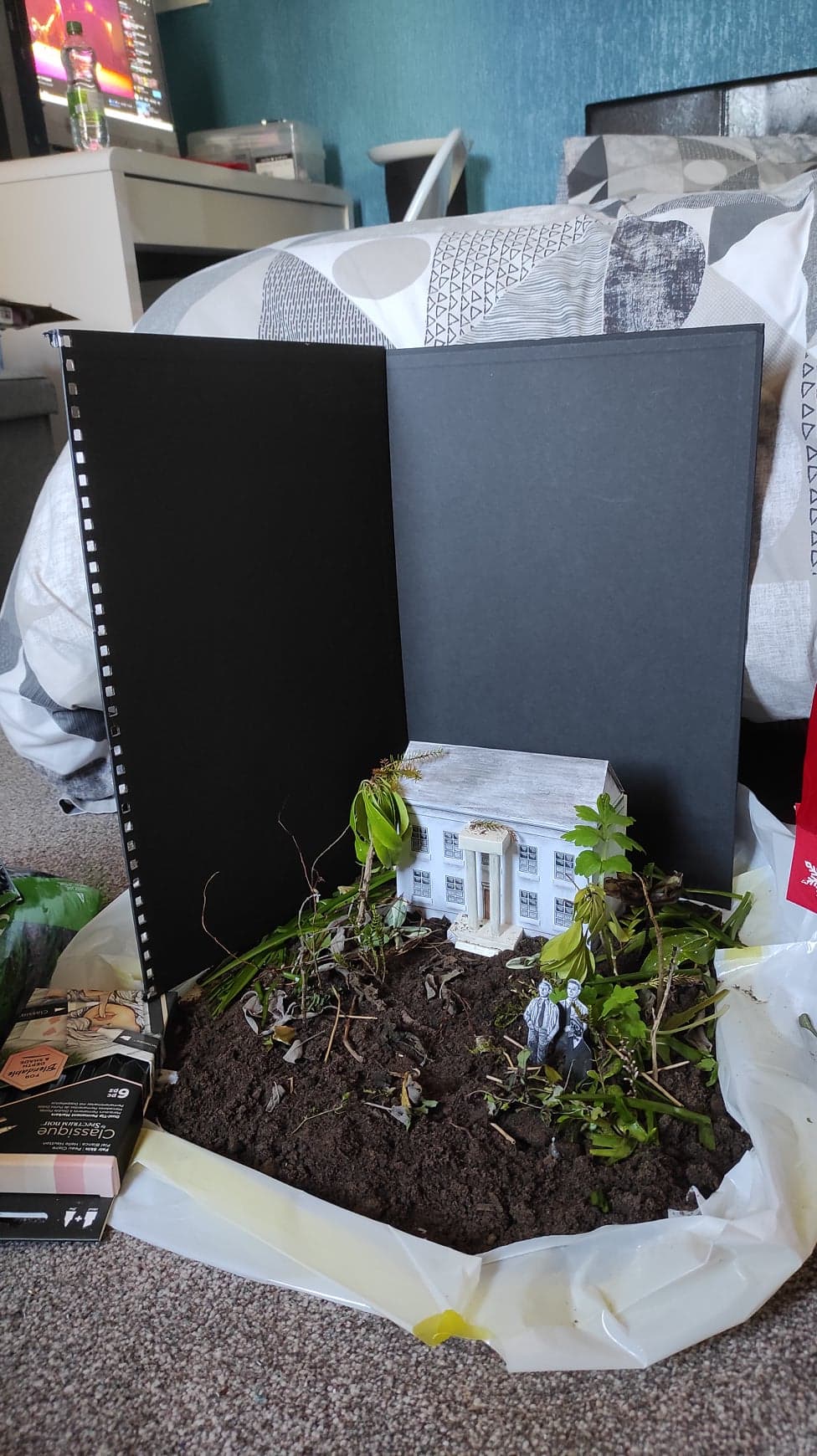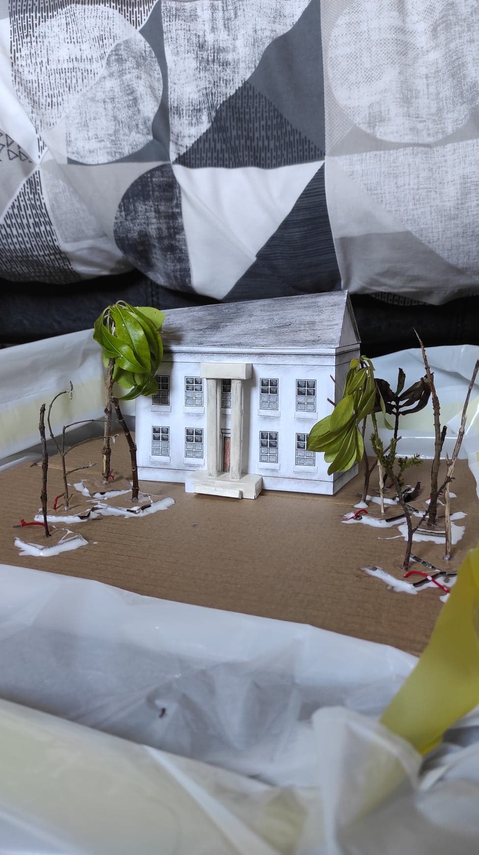 I've begun experimenting with creating 3D models now. Since I'm likely wanting to create a full outdoor scene of the house and surrounding environment, I've first created a very simple model of the house's exterior using thin white card. For this I had to essentially create my own origami design which I could fold into the correct shape and have interlocking joins in places. For an extremely basic construction, the result isn't too bad, however the strength and robustness of it needs to be much better as it is prone to warping with such thin material. The interlocking technique I used on the additional pillar piece proved to be very strong however and this is definitely something which I'll have to use more frequently to ensure my model is stable. Doing this also means the need for adhesives isn't necessary to stick things together. And obviously if I was creating my actual final model it would need to be infinitely more detailed and layered.